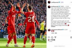 宽萨社媒晒出与若塔的赛场合照,并写道:“我无法相信,在你人生这么早的阶段,我们就听到了如此悲痛的消息。